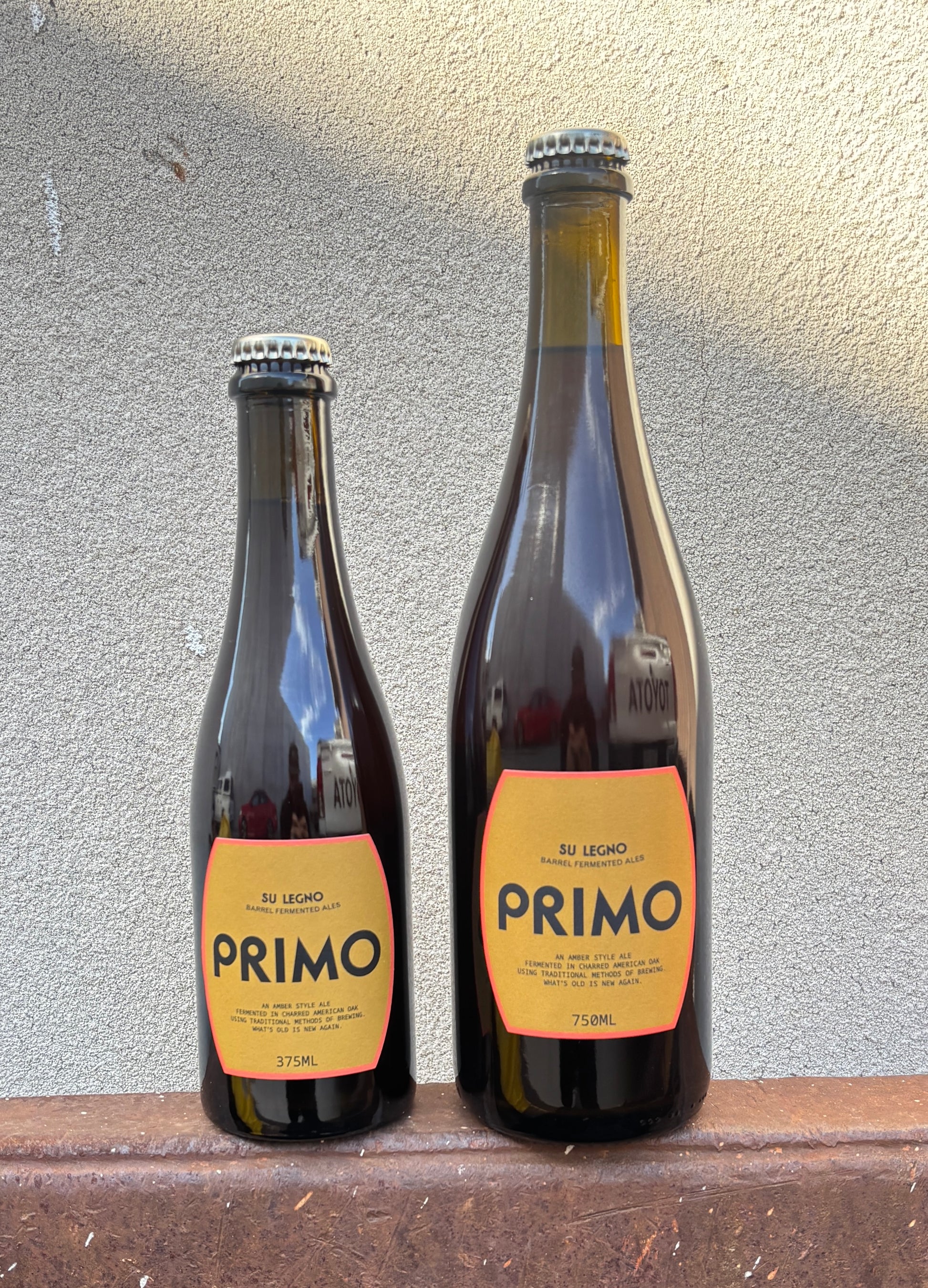 Su Legno Primo (first) is the first beer we tinkered with. Experimenting with what would work as beer entirely fermented in oak barrels. We honed our process entirely on the back of this beer and made many iterations before deciding that 6% was the perfect ABV for barrel fermented ales, providing body to support the oak without alcohol warming. Ale, crystal and roast malts were combined in different percentages over many recipes until landing on what we think is the perfect combination, that works with the charred American Oak without being too rich or intensely malty. We discovered that crystal and darker base malts mix well with our process and our barrels!
